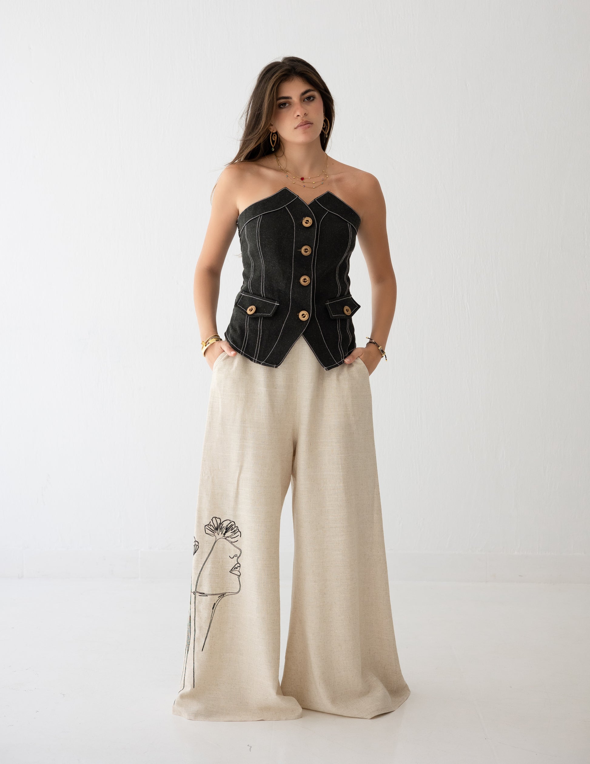 Structured yet effortless, the Dark Olive Corset is crafted from rich cotton denim in a deep ash tone.