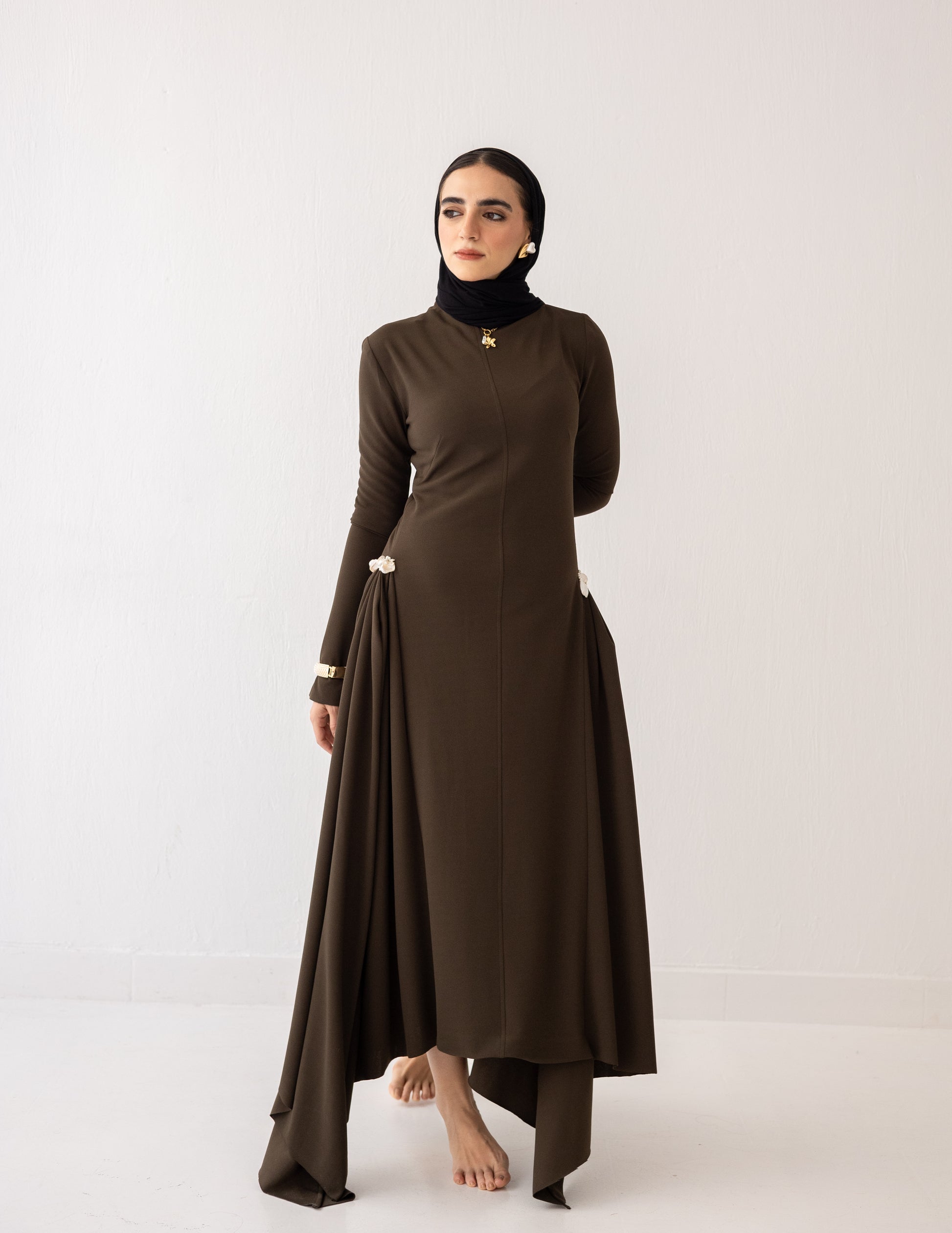 Earthy and elevated, the olive Serein Dress is made from fine French silk crepe with a graceful, flowing silhouette.