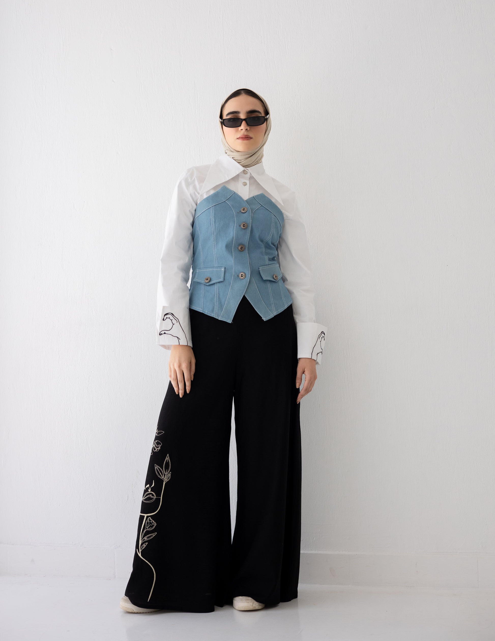 Breezy and refined, the Skye Blue Corset is crafted from soft cotton denim in a light airy tone.